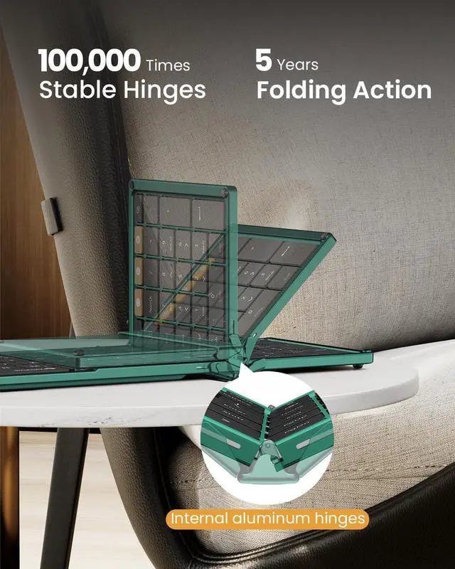 Full-Size Productivity On The Go: A 105-key folding keyboard delivers a true desktop experience with dedicated function/number padsideal for spreadsheets, coding, or data entry anywhere. Designed for frequent travelers, its ultra-slim profile and flat typing surface (no tilt) enable effortless portability, while the simple fold-and-go mechanism (no locking clips) ensures quick deployment ^^