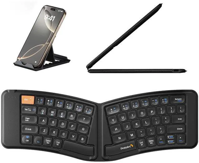 Ergonomic Foldable Keyboard: ProtoArc foldable bluetooth keyboard is featured with ultra-slim, 360 foldable and ergonomic split design. A portable bluetooth keyboard perfect for travel and business trips. Great for use on the airplanes, libraries, cafes or wherever on the go.