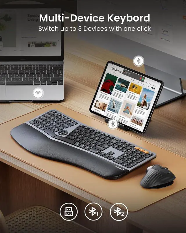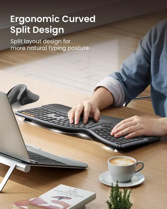 Full-Size Ergonomic Design: Say goodbye to discomfort with the ProtoArc Ergonomic Keyboard. Unlike standard keyboards, our full-size layout features a curved, split-keyframe design that reduces muscle strain on your wrists and forearms while promoting proper posture. The scooped keys are crafted to fit your fingertips perfectly, making typing effortless and natural ^^