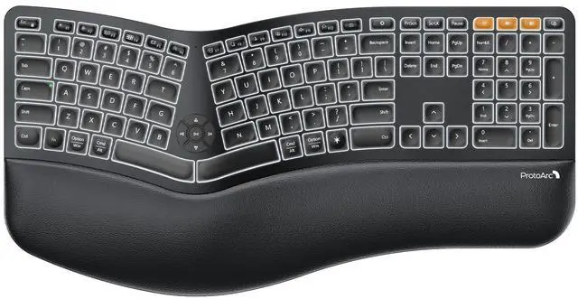 Full-Size Ergonomic Comfort: The ProtoArc Ergonomic Keyboard features a unique curved split-frame design that actively reduces strain on your wrists and forearms and promotes proper posture. The scooped keys are crafted to fit your fingertips perfectly, making typing effortless and natural.