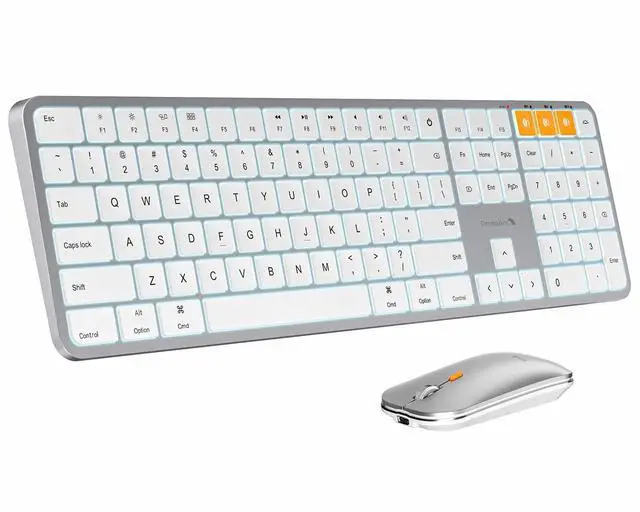 Devices: Bluetooth keyboard mouse for Mac can connect to three different devices simultaneously through its triple Bluetooth channels. You can easily switch between the devices by clicking on the mode switch button.
