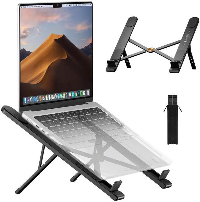 Foldable & Portable: This portable laptop stand only weighs 0.55 pounds and can be quickly folded into a small size of 10.1 x 2.2 x 0.3. Includes a velvet-textured storage pouch to keep the stand for laptop looking brand new and scratch-free, easily fitting into any backpack ^^ Easy to