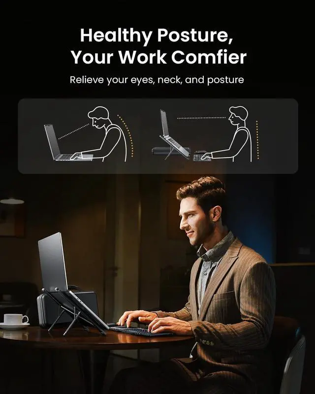 Adjustable & Ergonomic: This portable laptop stand supports dual height and width adjustment. Elevating your device from 2 to 6.5 inches (6 levels), positioning your screen at the perfect viewing height for maximum comfort. The computer stand also offers width adjustment, accommodating a wide range of 10- 17.3 devices such as laptops and tablets ^^