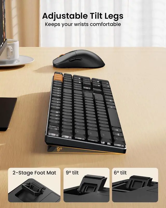 Sleek Aluminum Design: Immerse yourself in a sophisticated design with the full-size 108-key wireless keyboard, featuring a modern aluminum top case. This keyboard combines precision mechanics with comfort, offering ergonomically adjustable tilt legs for extended typing comfort ^^ 63G