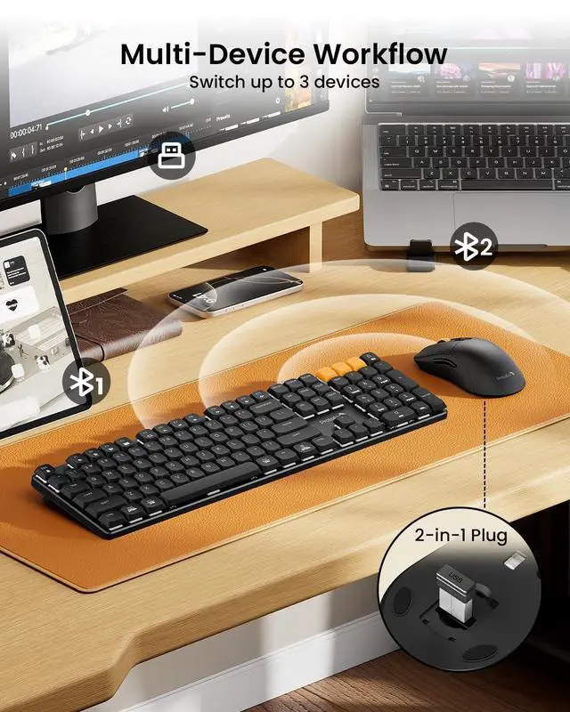 Seamless Multi-Device Connectivity: Effortlessly connect up to 3 devices using either the USB receiver or