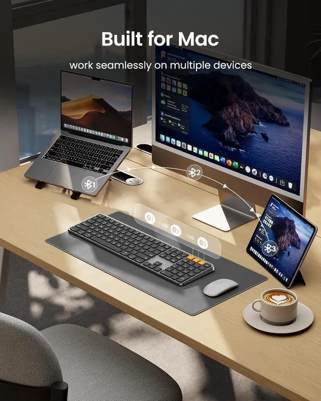 Mac: K100-A Bluetooth keyboard for Mac offers a sleek, full-size layout. Its compatible with Mac OS 10.12 and later, perfect for MacBook, MacBook Pro, MacBook Air, Mac Pro/Mini, iPad, and iPhone. It supports Bluetooth 5.1 and above.