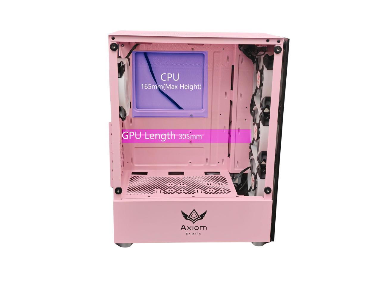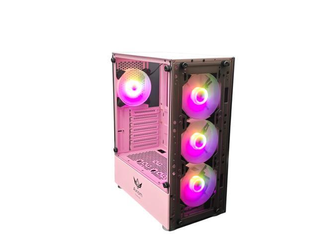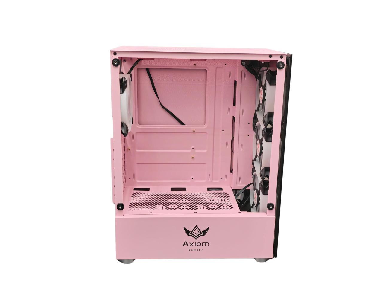 AXIOM GAMING | Nova Series C013 | ATX Mid-Tower PC Case | Built-in RGB Lighting | Tempered Glass Front & Side Panels | 4 x 120mm RGB Fans Included | Fan Controller with Remote | (Pink)