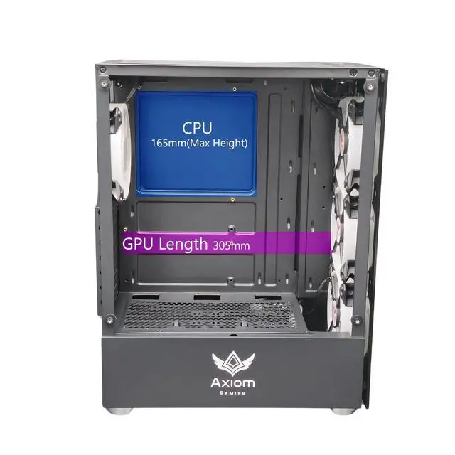 • Spacious Interior: Supports ATX and M-ATX, ITX motherboards, accommodates GPUs up to 305mm, and CPU coolers up to 165mm, providing ample space for powerful builds.