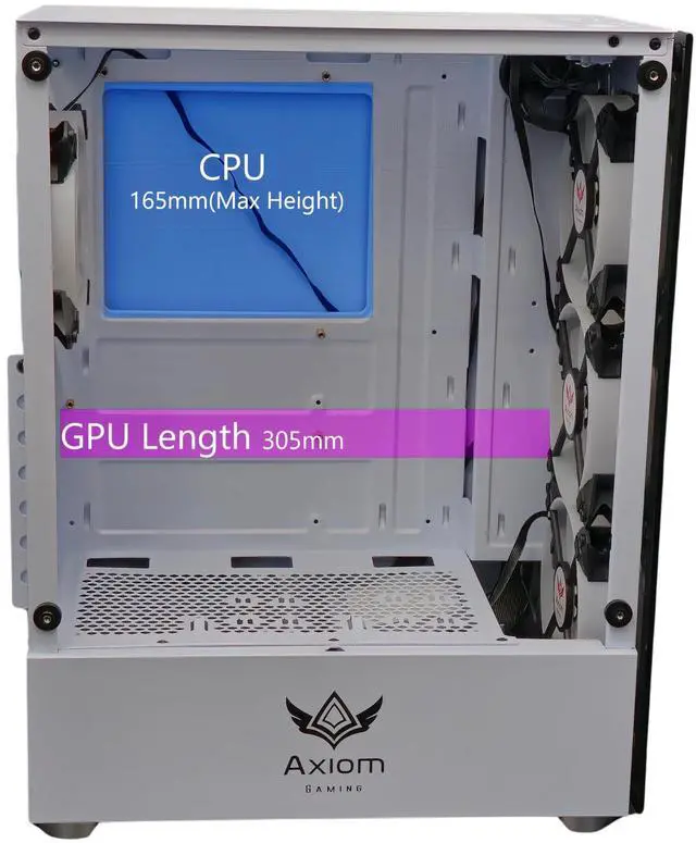 ^^ Spacious Interior: Supports ATX and M-ATX, ITX motherboards, accommodates GPUs up to 305mm, and CPU coolers up to 165mm, providing ample space for powerful builds.