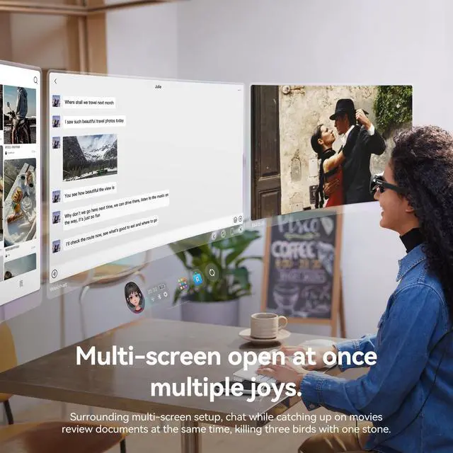 Multitasking: Rokid AR Spatial features a unique 3-screen display, allowing simultaneous use of 3 apps for boosted productivity, gaming, or immersive entertainment.