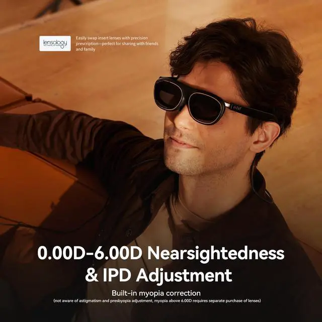 Myopia & IPD Adjustment: Supports up to 600 degrees(currently, astigmatism is not supported). Effortlessly fine-tune the adjustment dials on top of the glasses to achieve optimal comfort and clarity, elevating your movie and gaming adventures to a new level. Users with myopia greater than 600 will need to purchase separate prescription lenses. Auto IPD adjustment (5572mm) when paired with Station2.