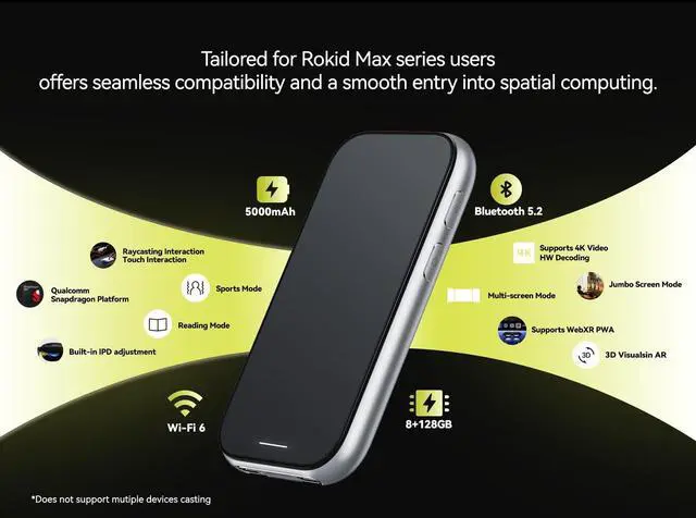 Rokid Station2 Google-Certified Spatial Calculator with Beam, Media Beam Best Companion Max2 AR Glasses, 5000mAh Battery, 8GB+128GB, Bluetooth 5.2, Wi-Fi 6