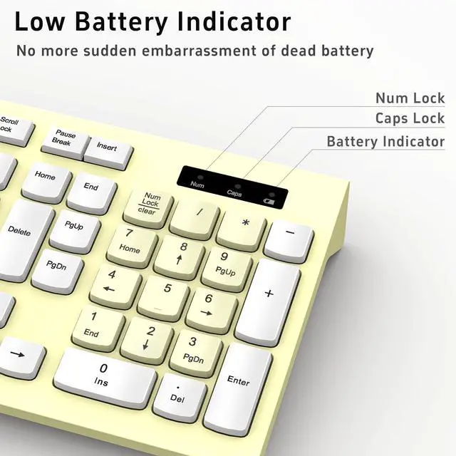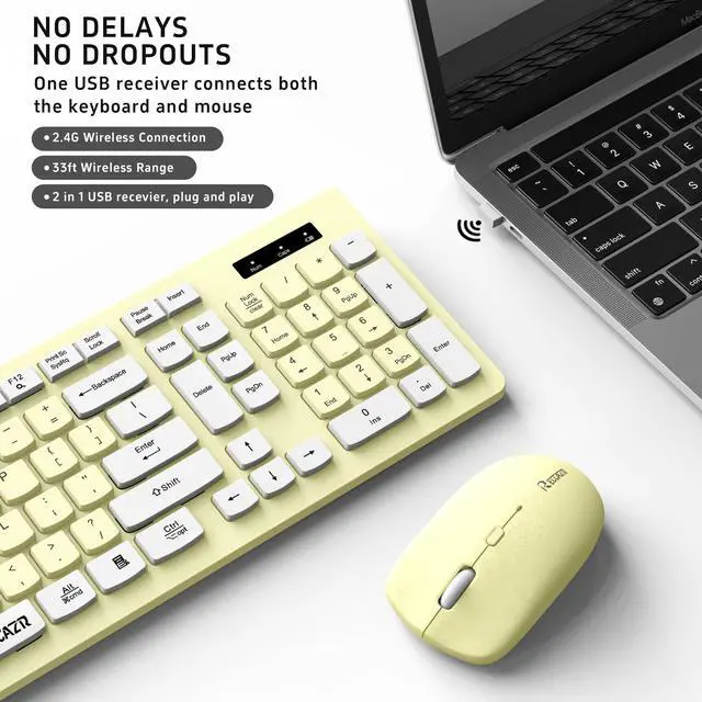 Wireless Keyboard and Mouse Combo, Full-Sized Wireless Keyboard and Adjustable DPI Mouse, 2.4GHz USB Receiver, Keyboard and Mouse for PC, Windows, Desktop, Laptop (Canary Yellow)