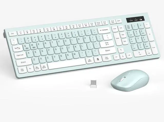 Lag-free & EfficientStable and reliable connection of wireless keyboard and mouse is up to 10m (33ft). This combo share a nano USB receiver, no need to take upadditional USB ports (Also the wireless keyboard and mouse can also be used separately). Plug and play, no software needed, convenient and efficient. ^^ Quiet & Type in ComfortWireless keyboard come with adjustable height tilt legs to increase comfort and prevent your wrists injury when typing for a long time. Our wireless keyboard adopts a silent structure. Soft membrane keys provide a quiet and comfortable typing experience.