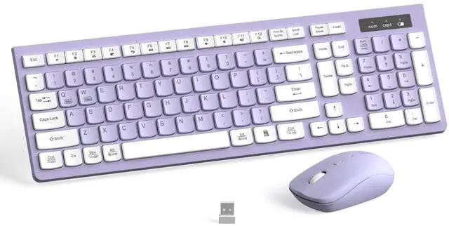 2.4G hz Wireless ConnectionStable and reliable connection of wireless keyboard and mouse is up to 10m (33ft). This combo share a nano USB receiver, no need to take upadditional USB ports (Also the wireless keyboard and mouse can also be used separately). Plug and play, no software needed, convenient and efficient. ^^ Full Size KeyboardThis wireless keyboard and mouse set is a full-size keyboard which can save space more workable. ^^ 12 Function Multimedia KeysReccazr wireless keyboard is with 12 multimedia function keys, you can quickly operate the multimedia player, volume adjustment, email, etc.