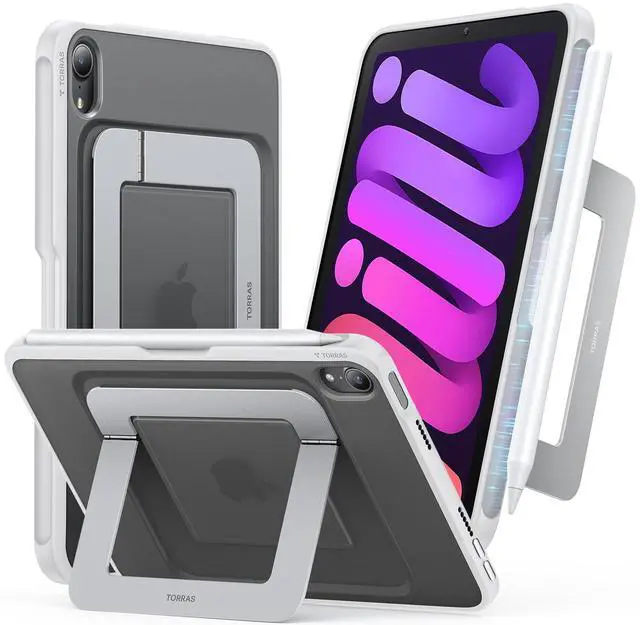 TORRAS for iPad Mini 6 Case, iPad Mini 7 Case A17 Pro, Ultra Stable Stand, Multiple Adjustable Viewing Angles, Slim Protective Kickstand Cover, Translucent iPad Mini 6th Case with Pencil Holder, White