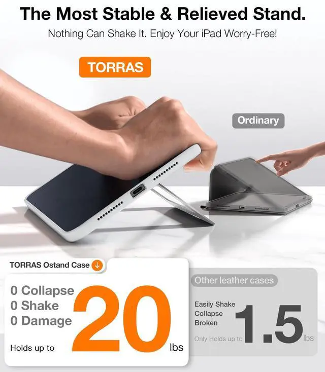 UNBEATABLE STURDINESS & STABILITY: Say goodbye to shaky cases! TORRAS Ostand iPad Mini 7 Case 2024 is a real game-changer to boost your productivity. Its dual stands are made of aviation aluminum and use the exclusive Tora-Hold tech enhances hinge damping. It's extremely solid, passing over 30,000 durability tests and giving your iPad super stable support. No more shakes or collapses like traditional leather cases. Confidently create with it
