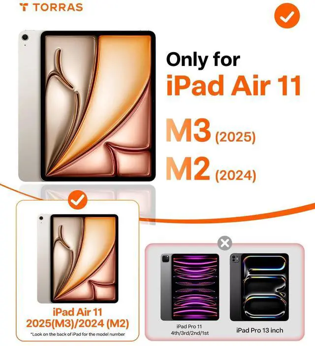Any Angle: Tired of limited stand angles and complicated adjustments? TORRAS innovative dual-stand design allows you to freely adjust the screen angle. The short stand is perfect for low-tilt writing and drawing, while the long stand switches easily between landscape and portrait modes, offering the best viewing angle. This iPad Air 11 inch case locks securely with a simple pull, making it more convenient and efficient for use and creation! ^^ Rock-Solid Support Where You Need It: Worried your stand will slip or collapse on your bed, couch, or desk? Our iPad Air 11 M3/M2 case uses aerospace-grade aluminum hinges with Tora-Hold damping technology to deliver unwavering stability at any angle. Wherever you set it down, it stays putso you can focus on what matters, not on propping up your iPad. ^^ Professional-Grade Protection You Can Rely On: This iPad Air 5th generation case features a 2.5 mm raised front bezel to prevent your screen from touching surfaces and guard against scratches and wear; its reinforced backplate and corner airbag cushions absorb shocks from drops, bumps, and scrapes, keeping your device protected even without a cover.
