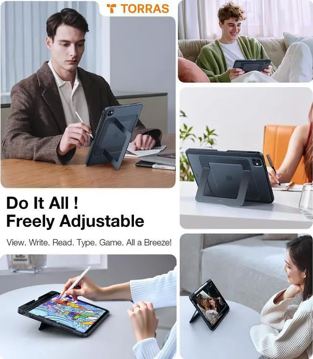 UNBEATABLE STURDINESS & STABILITY: Say goodbye to shaky cases! TORRAS Ostand iPad Pro 11 inch Case 2025 is a real game-changer to boost your productivity. Its dual stands are made of aviation aluminum and use the exclusive Tora-Hold tech enhances hinge damping. It's extremely solid, passing over 30, 000 durability tests and giving your iPad super stable support. No more shakes or collapses like traditional leather cases. Confidently create with it ^^