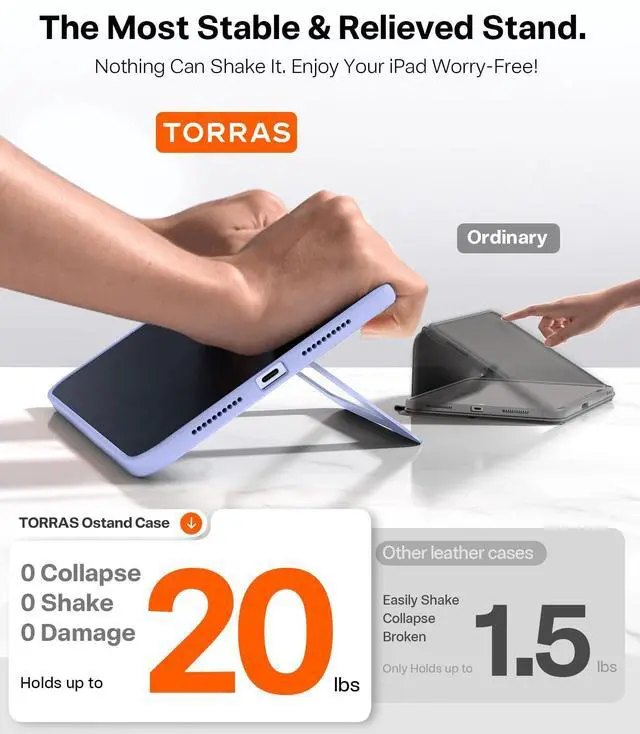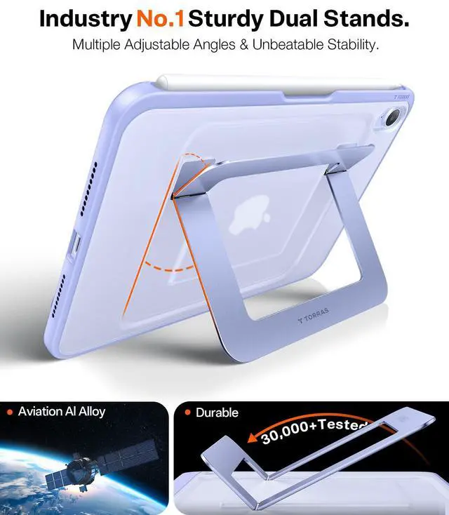 UNBEATABLE STURDINESS & STABILITY: Say goodbye to shaky cases! TORRAS Ostand iPad Mini 7 Case 2024 is a real game-changer to boost your productivity. Its dual stands are made of aviation aluminum and use the exclusive Tora-Hold tech enhances hinge damping. It's extremely solid, passing over 30, 000 durability tests and giving your iPad super stable support. No more shakes or collapses like traditional leather cases. Confidently create with it ^^