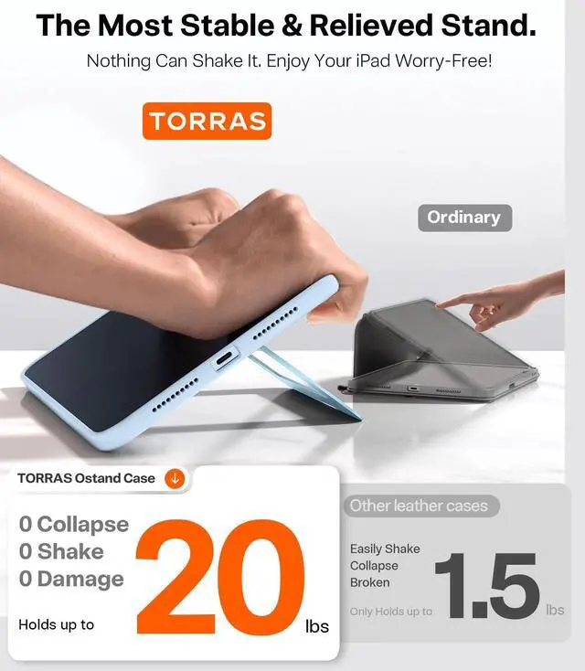 UNBEATABLE STURDINESS & STABILITY: Say goodbye to shaky cases! TORRAS Ostand iPad Mini 7 Case 2024 is a real game-changer to boost your productivity. Its dual stands are made of aviation aluminum and use the exclusive Tora-Hold tech enhances hinge damping. It's extremely solid, passing over 30, 000 durability tests and giving your iPad super stable support. No more shakes or collapses like traditional leather cases. Confidently create with it ^^