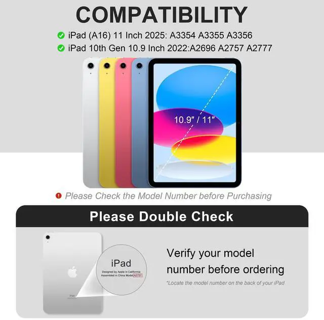 MaterialMade of flexible silicone back & TPU cover, iPad (A16)2025/2022 case provides full protection against shocking & scratching for your new iPad 11th/10th generation 2025/2022