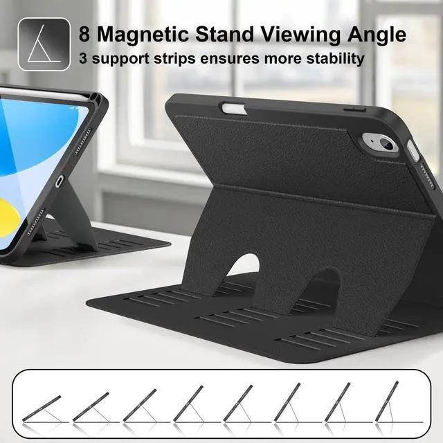Multi angles8-angles magnetic stand shell creates different angles for viewing or typing ,ensures stability and convenience; magnet secures the iPad 11th/10th generation case closure, easy to snap on and off