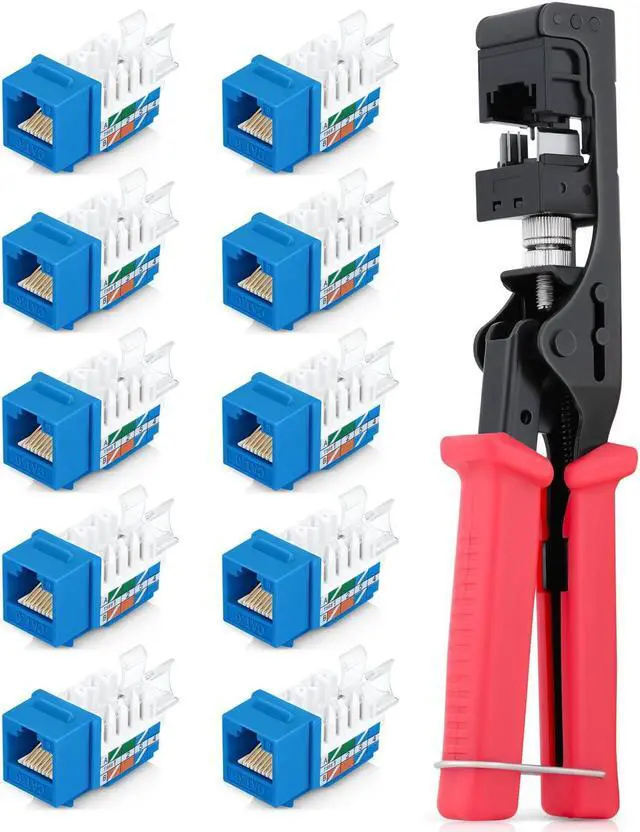 Items: 45Term - Speed Termination Tool + 10 Pack of RJ45 CAT6 UTP Keystone Jacks - Blue