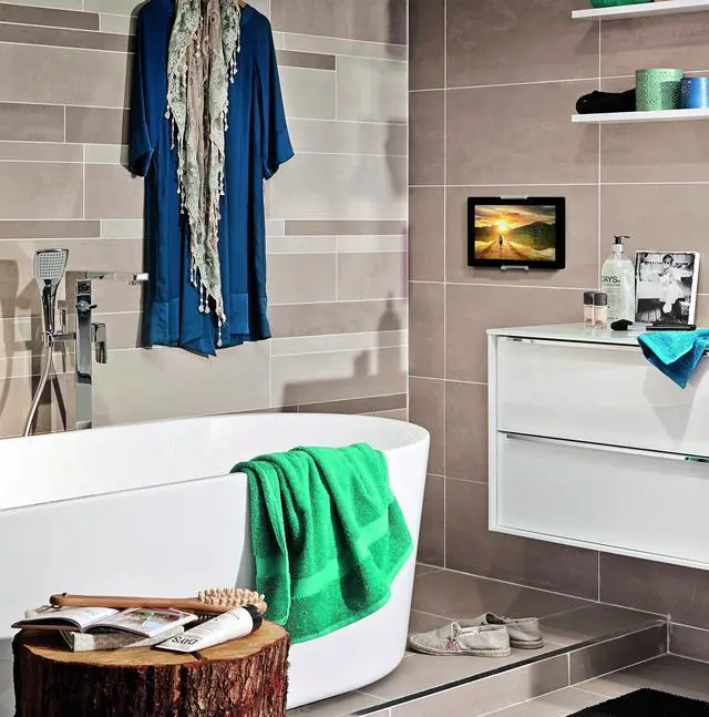 Enjoy Your Music and TV Anywhere At Vogel's, we find that listening to music or watching TV on a tablet is the perfect way to relax in the bath. However, you don't want to take the risk of dropping it in the water. That's why our designers drew upon their experience to come up with an ideal way to attach a tablet securely to walls. A Tablet Holder that fits all Tablet Brands The stylishly designed Vogel's tablet holder fits all tablets from 7-13 inches that are 0.2 - 0.5 inches ( 0.5 - 1.3 cm) thick.