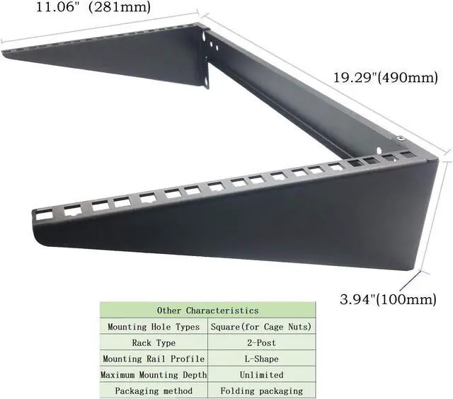 PRODUCT SIZE: 6U; W 19.29" x D 11.06" x H 3.94", compatible with Most 19" Rack Mountable Equipment. 44 pounds max loading capacity.