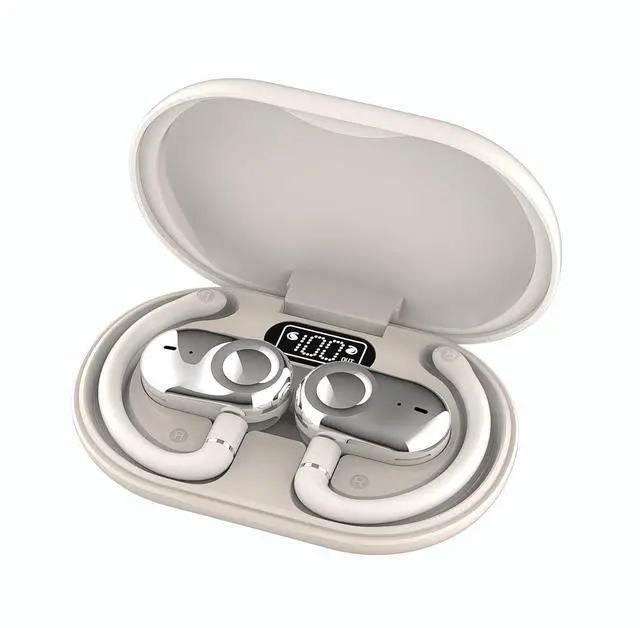 URIZONS Earhook TWS Gaming On Ear Earbuds Wireless Earphones - Low-Latency with Charging case Bluetooth Over Ear Headphones TWS Headset Suitable for Gamers/Runners/Fitters/Sport -Beige