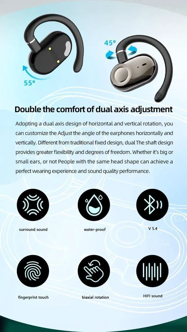 [Unique Design] 180 angle Rotatable Ear Hook make it put on your Ears Easiler than Normal