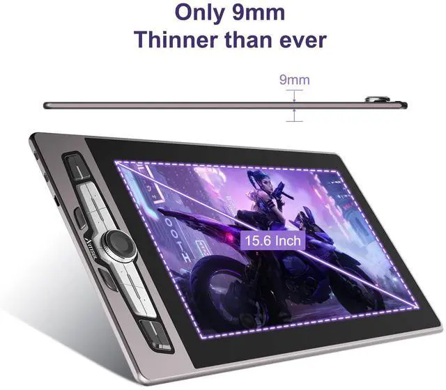 Larger Size&High Color Gamut: SP1603 pen display has a large screen and 15.6-inch drawing area. Only 9mm Ultra Thin Aluminum Body, which is slim and easy to carry. Superb color accuracy of 90% NTSC(128% sRGB), 178° full viewing angle, and 1920x1080 HD