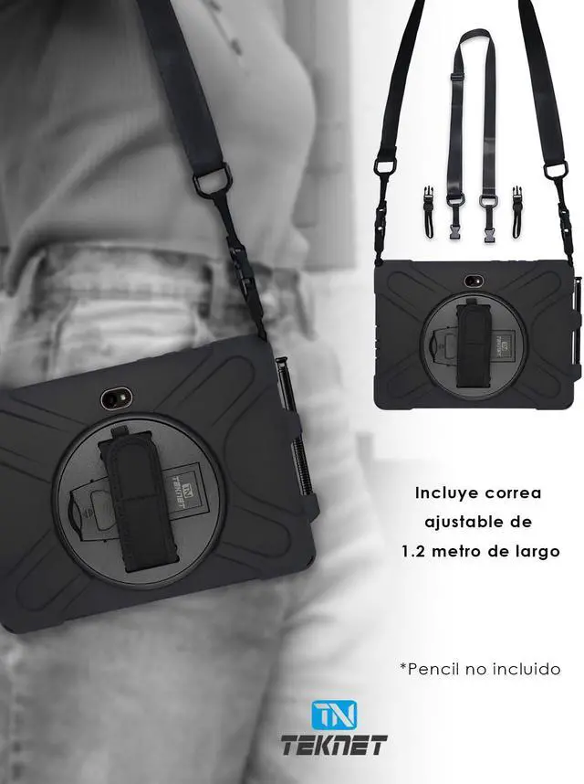 TEKNET Case for Samsung Galaxy Tab Active Pro T540 T545 T547 10.1 Inch Pen Holder Shoulder Strap and Rotating Case with Hand Strap (Black)