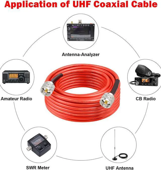 Applications -- This cb antenna cable is widly used for any 50 Ohm RF system,such as vhf marine antenna,cb radio,ham radio,vhf radio,antenna analyzer,antenna transceiver,monitor,antenna tuner,dummy load,SWR meter and ect.
