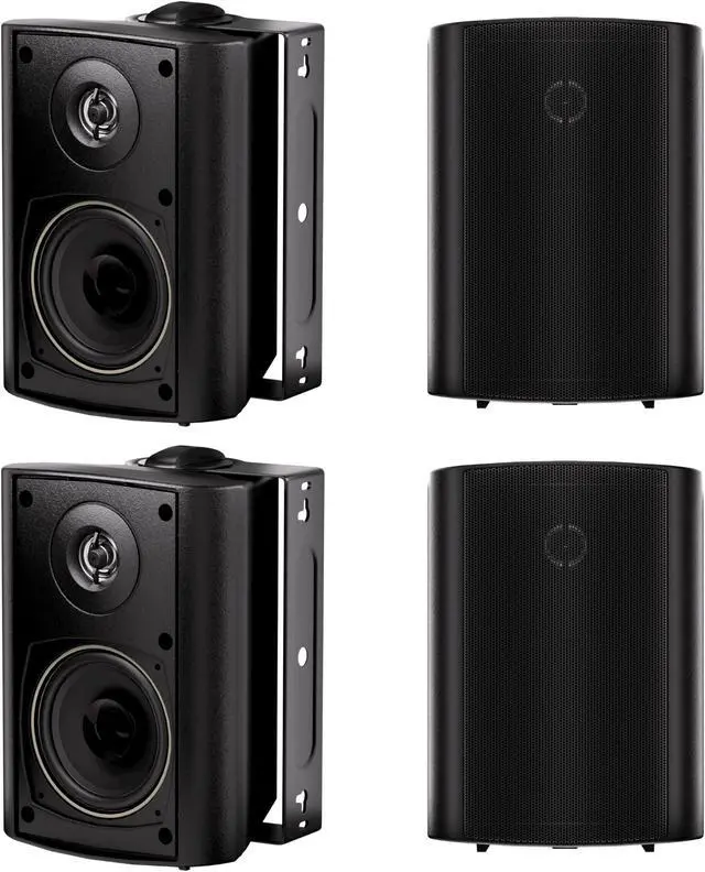 Herdio 4 Inch Outdoor Speakers with Bluetooth 4 Channel Amplifier for Indoor Outdoor Patio, Deck, Waterproof Wall Mount System (4 Speakers)