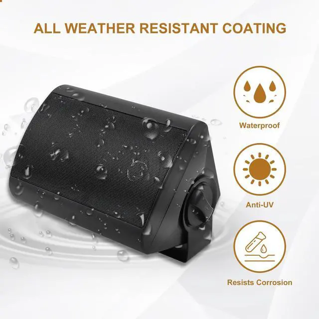 SUPERIOR SOUNDMaximum power 200 Watt (A pair), ,It designed for indoor/outdoor use. powers a 4aluminum injection cones woofer and 1.0 superior dome tweeters for added bass response, achieving crisp sounds and filling your area with clean highs.