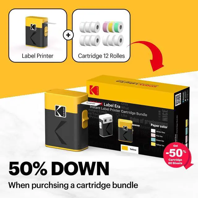 KODAK Label ERA Label Maker Machine Bundle, White (1 Roll Sticker Label + 12 Rolls Set)