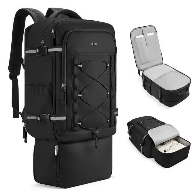 CLUCI Travel Backpack 30L, Waterproof Laptop Backpack Fits 17.3 Inch Laptop, Carry On Backpack with shoe compartment, Durable Expandable Go Bag, Large Hiking Backpack for Men WomenBlack