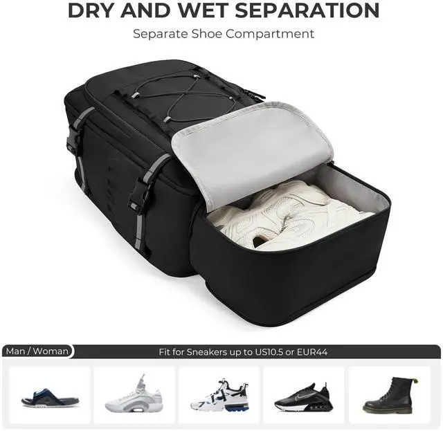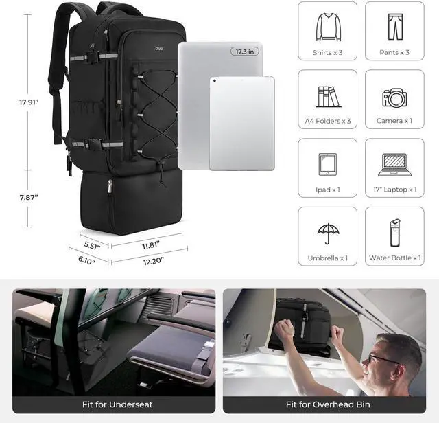 Large Capacity & Expandable: Dimensions: 17.91 x 12.2 x 6.1 inch.Thanks to multiple compartments and a hidden shoe compartment, the maximum capacity of this laptop backpack can reach 30L. There is a separate laptop compartment to give your 17.3" laptop extra protection. At the same time, there is also a main compartment large enough to put down your clothes for 1-2 days.