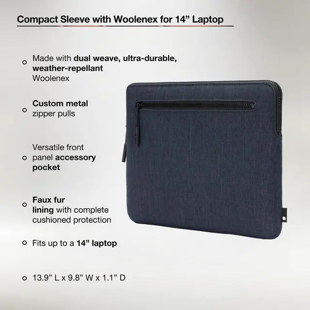 Incase Compact Laptop Sleeve with Woolenex - 14" MacBook/Laptop and iPad/Tablet Sleeve, Computer Case and Cover, Lightweight, Weather Resistant, with Slip Pocket for Accessories - Heather Navy