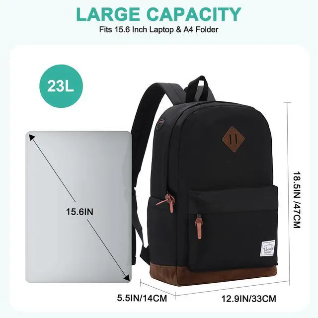 VASCHY Backpack for Men, Unisex Classic Water-resistant College School Backpack Bookbag Laptop Backpack Black