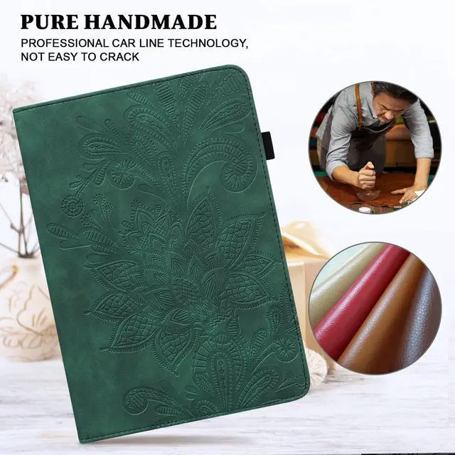 VODEFOX Case for Amazon Kindle Fire Max 11 Case (13th Generation, 2023 Release) 11",PU Leather Folio Stand Embossed Lace Flower Stand Cover with Elastic Band Stylus for Fire Max 11 Tablet - Green