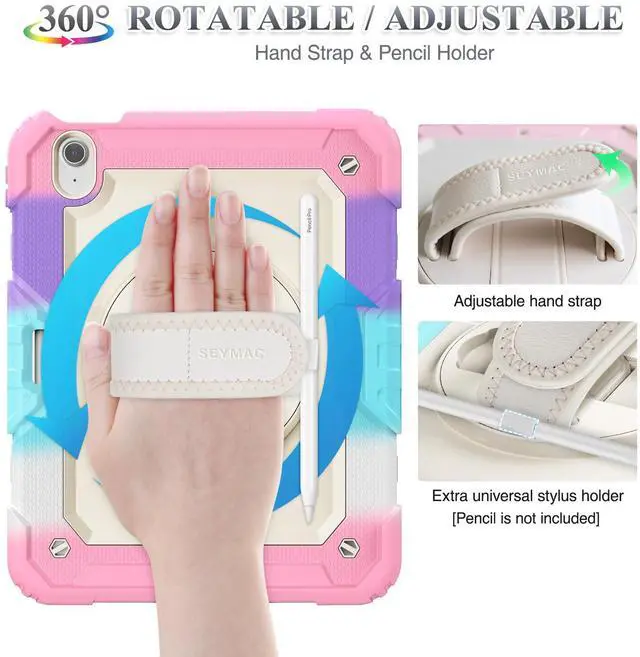 SEYMAC stock Case for iPad Air 11 inch Case M3/ M2 (2025/2024), for iPad Air 6th Generation, Heavy Duty Protective with Pencil Holder, Screen Protector, Stand, Hand Strap, Shoulder Strap, Pink