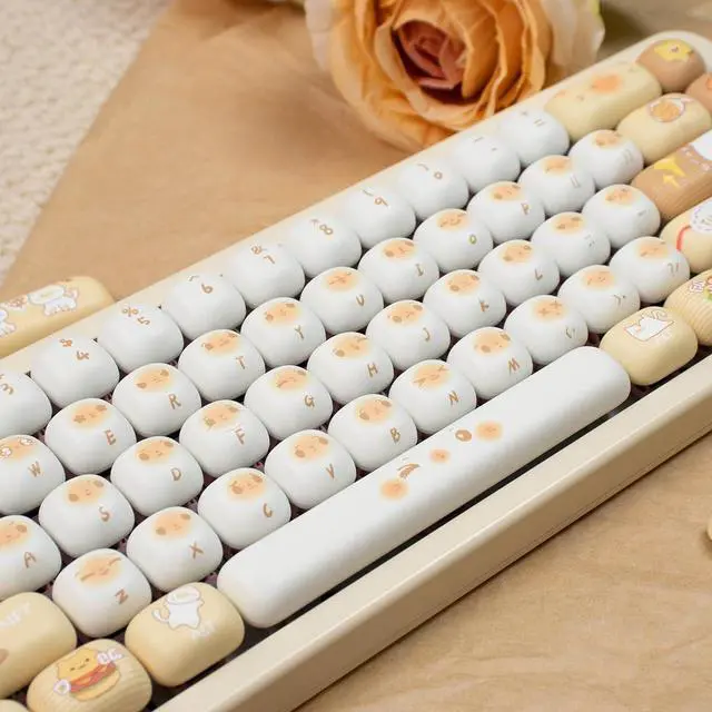 Cute MOG Profile Keycaps: The yellow keycap adopts the new MOG profile, cute mushroom shape design, unique rounded edges, offering both a unique aesthetic. Kawaii keycap allowing for better finger placement, reducing fatigue during long typing sessions, provides a satisfying tactile experience and a comfortable typing experience.
