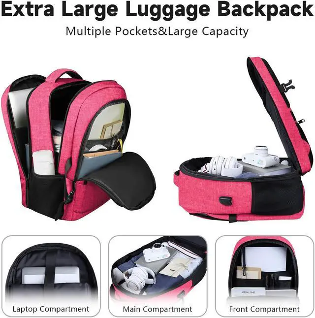 Lapsouno Extra Large Backpack, 17.3 Inch Travel Laptop Backpack, Water Resistant Casual Hiking Daypack, Computer Bag with USB Port, College School Business Carry on Rucksack for Women, Pink