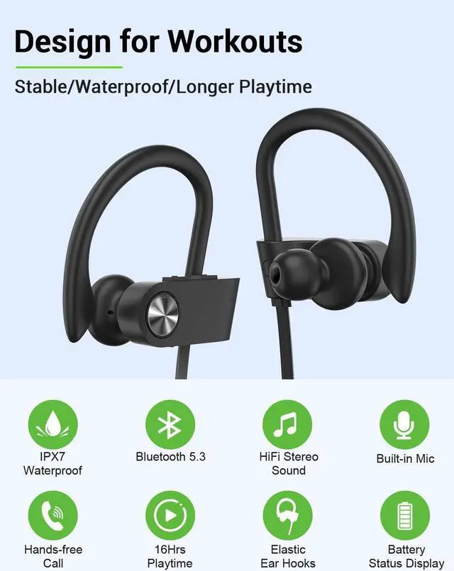 Dual Waterproof Protection: With IPX7 waterproof rating and interior nano-coating technology, our workout headphones can effectively withstand sweat or rain, making wireless headphones functions well and safely during workout.