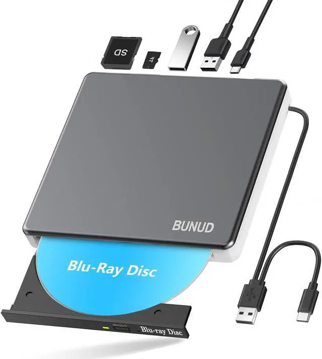 5 In 1 Blu ray DVD DriveExternal blu-ray drive is a 5 in 1 drive with 2 USB ports and SD/TF slot for reading files/photos/videos between your computer and external storage device. 2 USB ports will effectively solve the problem of insufficient USB ports.
