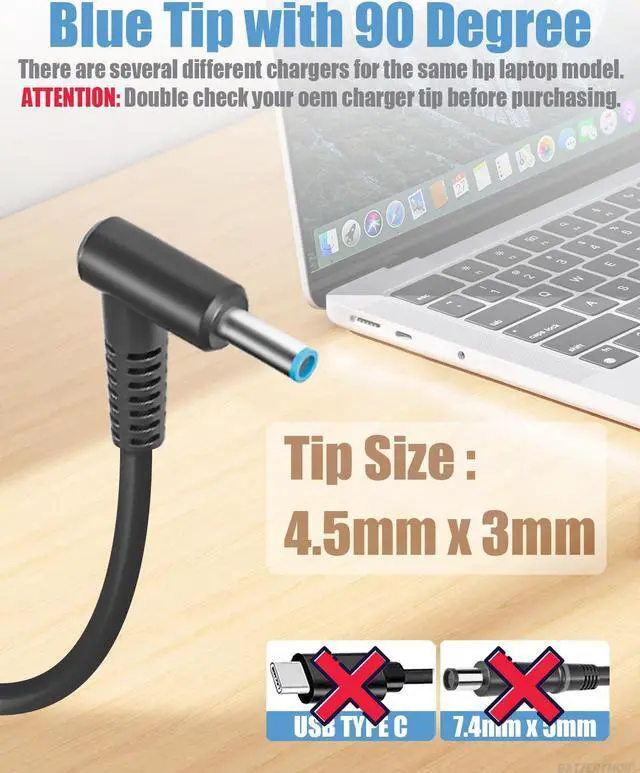 • Output Max: 19.5V 6.15A ; Connector size: 4.5 x 3.0mm ( Blue Tip ) Please kindly make sure your oem charger tip is the same as ours before purchasing.