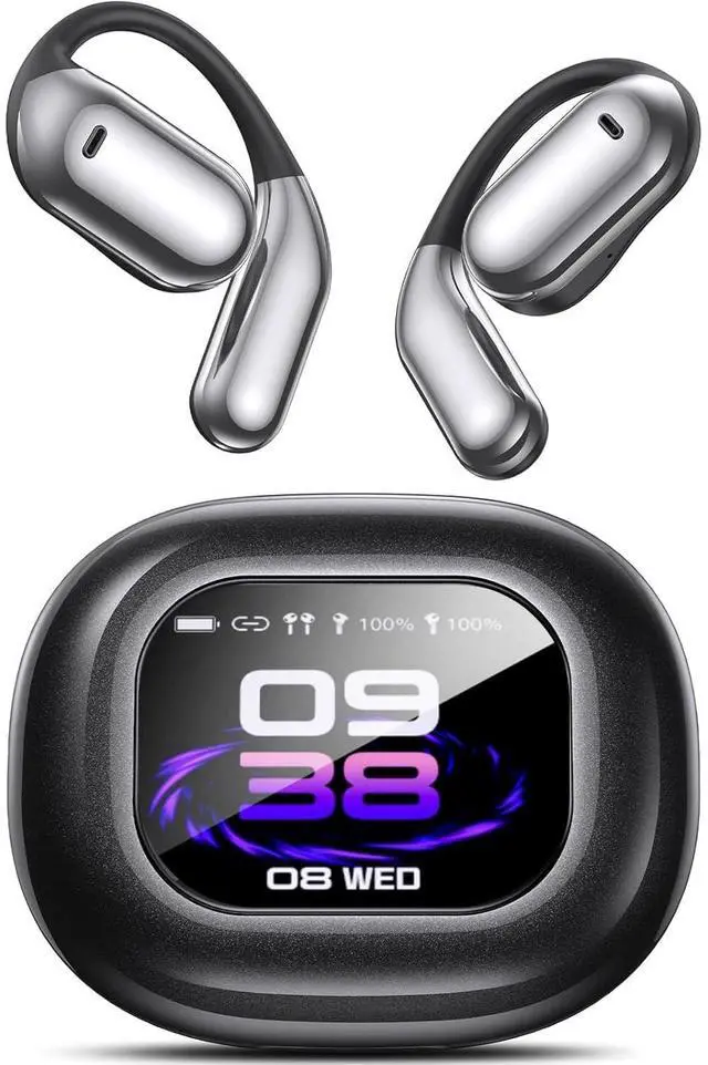 NUPLEA Open Ear Bluetooth 5.4 Earbuds -Bone Conduction Headphones 2025 New Intelligent Touch Screen Ultra Comfy Over The Ear Bluetooth Earbuds with Earhooks IPX7 Waterproof for Exercise
